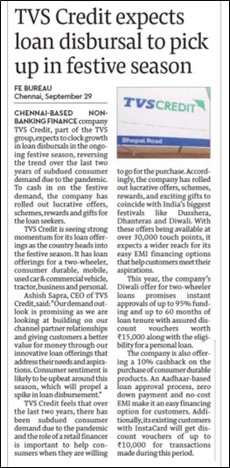 টিভিএস ক্রেডিট সার্ভিসেস কিউ2 লাভে 27% বৃদ্ধি পোস্ট করেছে