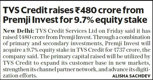 সিসিআই প্রেমজী ইনভেস্ট-কে ছাড়পত্র দিয়েছে - টিভিএস ক্রেডিট সার্ভিসেস ডিল