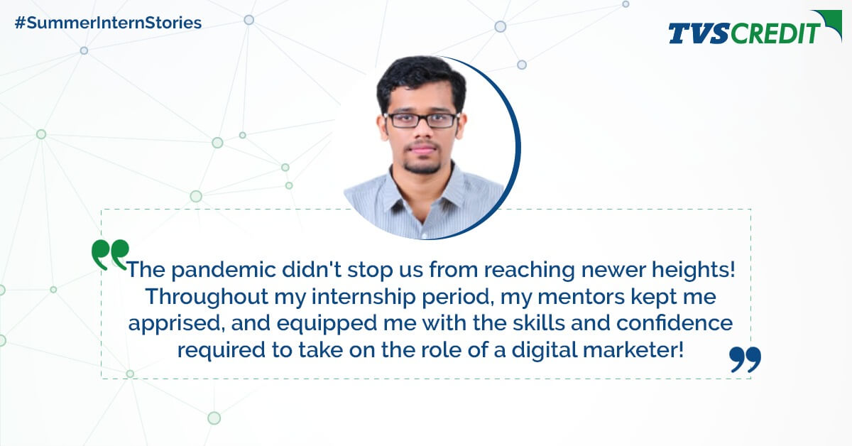 My virtual summer internship at TVS Credit was a once in a lifetime experience – Shubham Langer