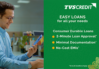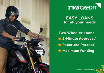 பாதுகாப்பு எச்சரிக்கை: மோசடியாளர்கள் டிவிஎஸ் கிரெடிட்டின் பெயரை தவறாகப் பயன்படுத்துகின்றனர். எந்தவொரு தனிப்பட்ட தகவலையும் பகிர வேண்டாம் அல்லது யாருக்கும் பணத்தை டிரான்ஸ்ஃபர் செய்ய வேண்டாம். சிறப்புச் சலுகைகள் பக்கத்தை அணுகுவதன் மூலம் எங்கள் அனைத்து சிறப்பு சலுகைகளையும் சரிபார்க்கவும். நீங்கள் ஏதேனும் போலி அழைப்புகளைப் பெற்றால், 1930-ஐ அழைப்பதன் மூலம் அல்லது சஞ்சர் சாதி போர்ட்டல் அல்லது செயலி மூலம் உடனடியாக அவற்றை தெரிவிக்கவும்