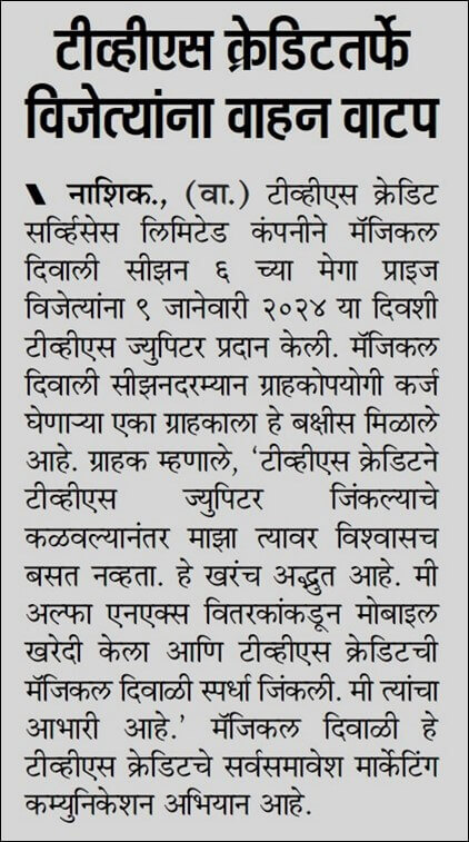 டிவிஎஸ் கிரெடிட் மேஜிக்கல் தீபாவளி S06 மெகா பரிசு வெற்றியாளர் அங்கீகாரம்